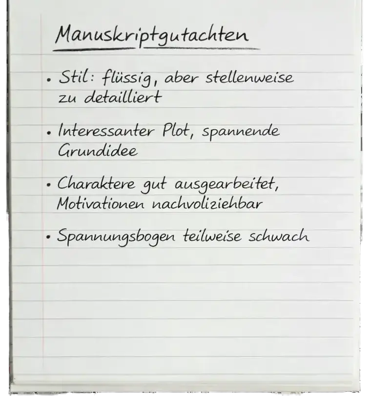 Manchmal braucht es einen neutralen, fachkundigen Blick von außen, um zu erkennen, wo ein Manuskript steht und welches Potenzial darin steckt. Ein Manuskriptgutachten ist die ideale Möglichkeit, eine professionelle Einschätzung zu erhalten – ohne gleich ein komplettes Lektorat durchlaufen zu müssen.